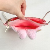 ふわふわなピンク色のフェイクファーを使った、まるでうさぎのぬいぐるみのようなポシェットです。