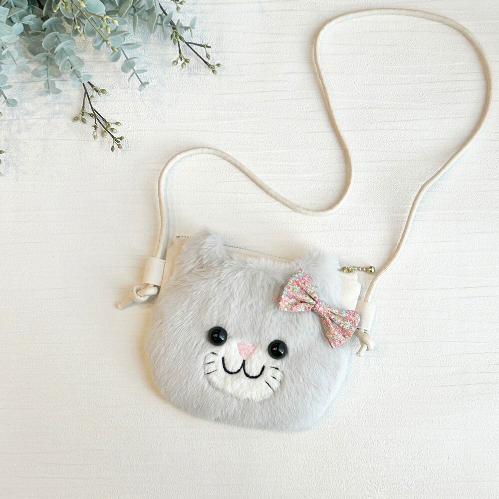 【ファスナー付き】ねこのふわふわポシェット(キッズ)