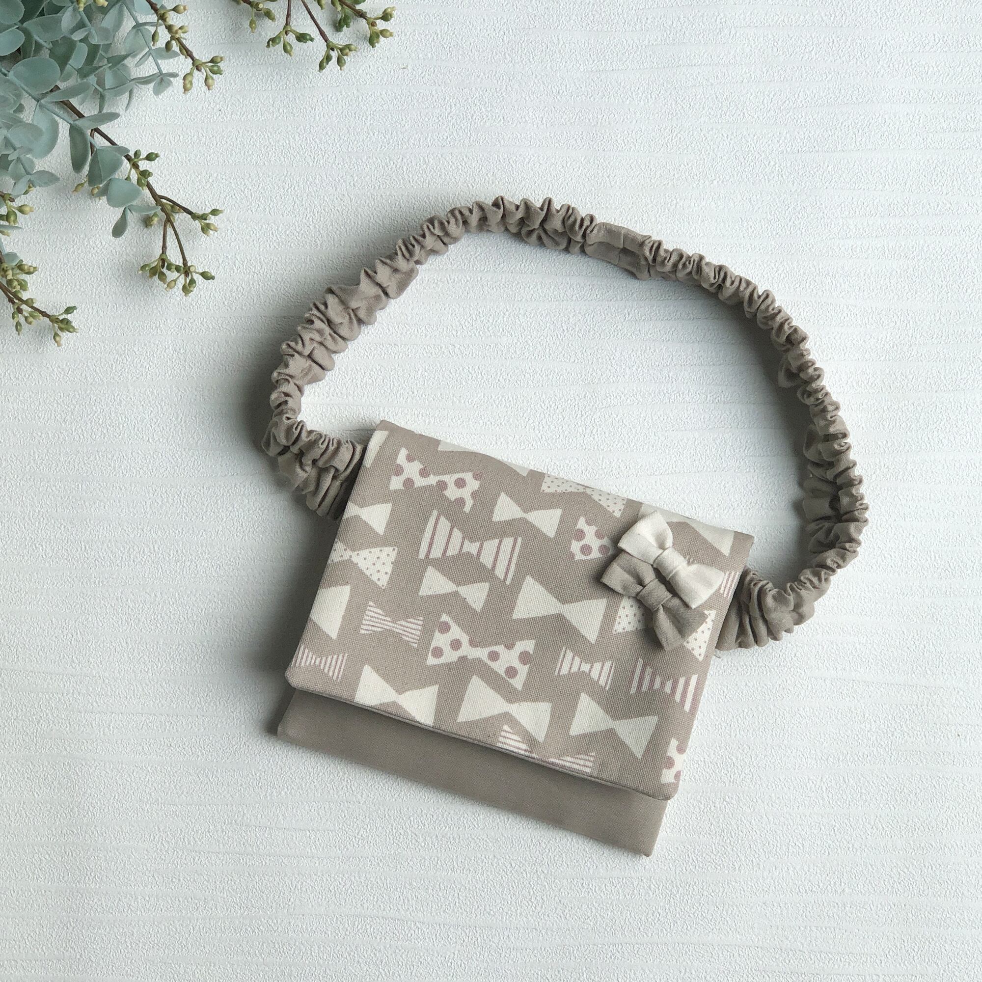 【ウエストゴム】くすみカラーが可愛いリボン付き移動ポケット(グレージュ)