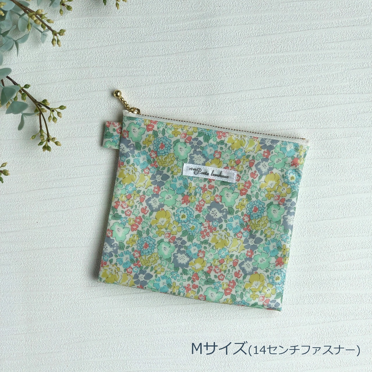 【ラミネート】リバティ サニタリーポーチM(マチあり)ライトグリーン